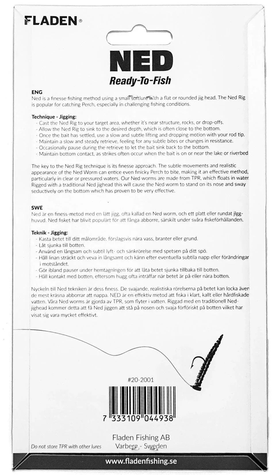 Setin mukana tulevat TPR-materiaalista valmistetut kelluvat Ned-madot nousevat houkuttelevasti pohjasta ylöspäin, kun ne yhdistetään sinkkisiin jigipäihin. Tämä ainutlaatuinen liike on osoittautunut erittäin tehokkaaksi saamaan ahvenet iskemään, erityisesti vaikeissa olosuhteissa.