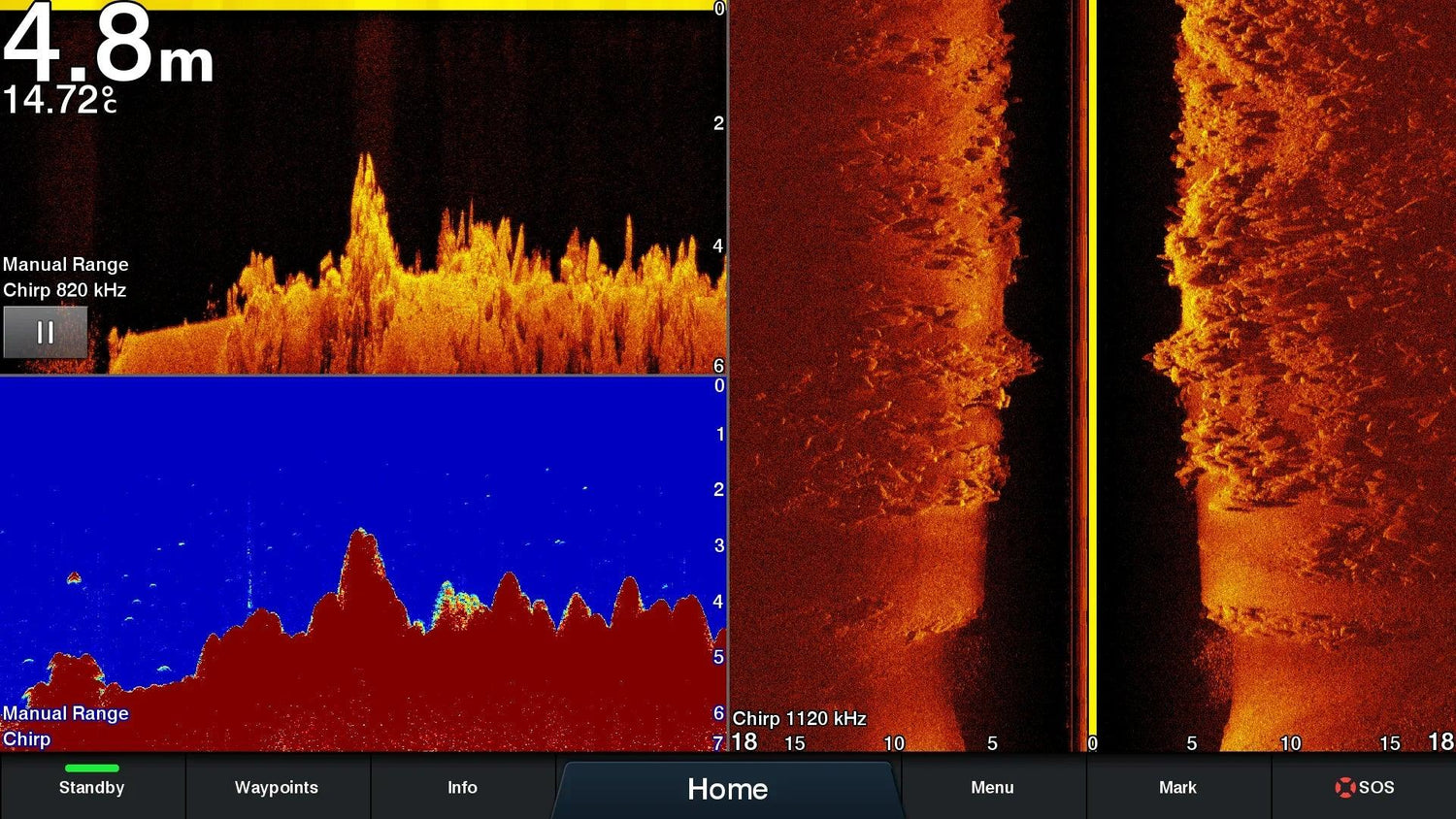 • Ultra High-Definition SideVü: 1,2 MHz (1 200 kHz), CHIRP-alue: 1 060–1 170 kHz