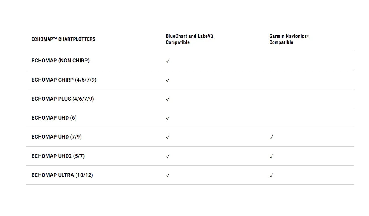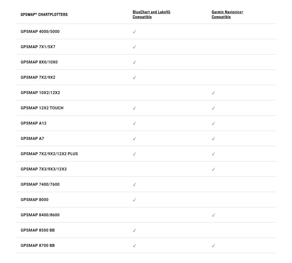 • Garmin Navionics+ tai Garmin Navionics Vision+ kartan käyttö vaatii, että yhteensopivaan karttaplotteriin on tehty tammikuun 2022 ohjelmistopäivitys, joka on kätevästi esiohjelmoitu karttakorteille. Ohjelmistopäivitys on myös ladattavissa ActiveCaptain-sovelluksen tai Garmin Express™-ohjelmiston avulla