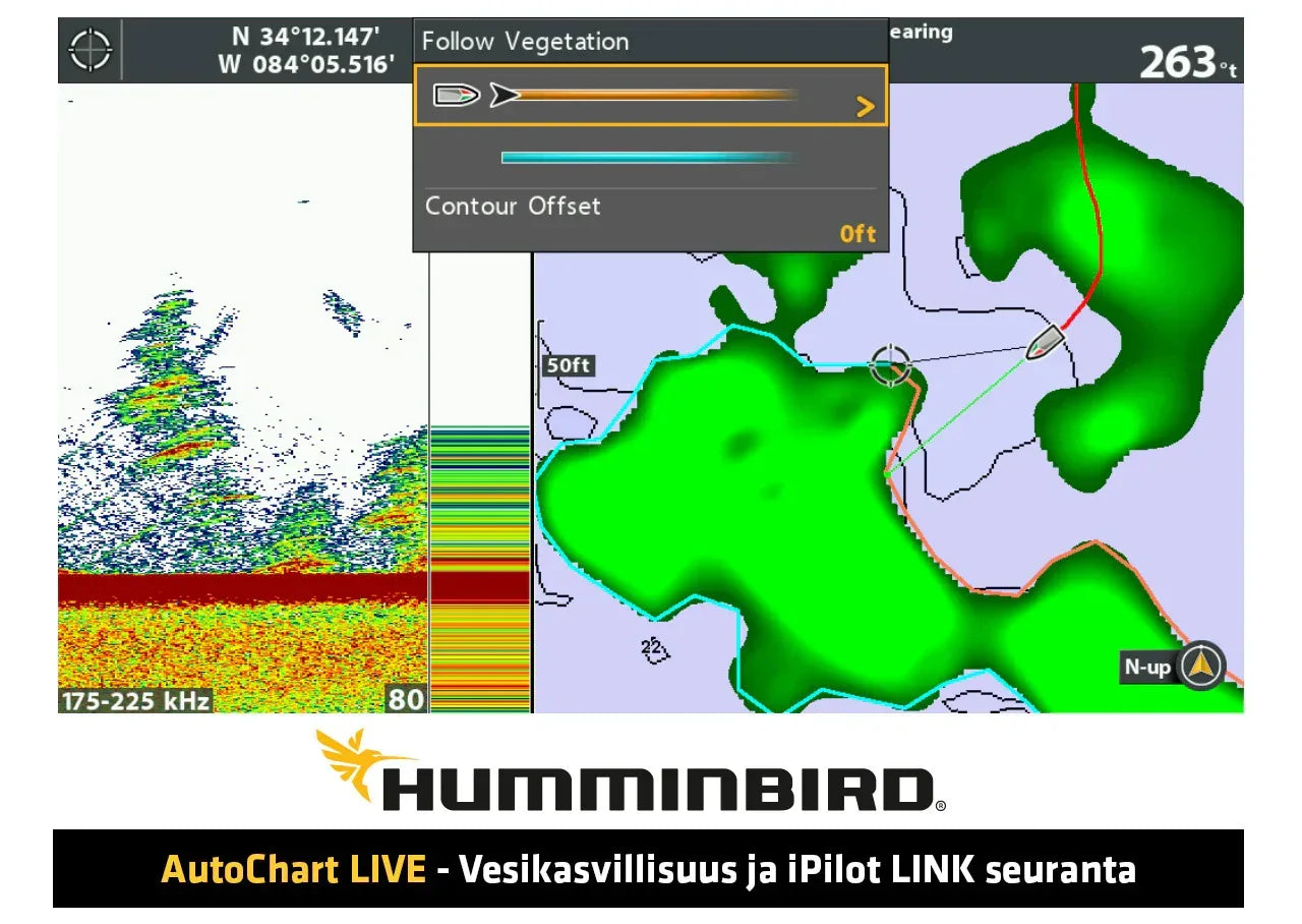 One-Boat Network tarkoittaa saumatonta yhteistyötä Humminbird-kaikuluotaimien ja esim. Minn Kota i-Pilot LINK -yhteensopivan sähkökeulamoottorin kanssa. Voit esimerkiksi käskeä sähkömoottorisi seuraamaan AutoChart LIVEllä tehtyjä syvyyskäyriä pitkin ja itse keskittyä kalastukseen. Myös ankkurointi, joko i-Pilot-taivasankkurointi tai Minn Kota Talon -matalavesiankkurointi, käy parin näppäimen painalluksella minkä tahansa One-Boat Network -laitteen avulla!