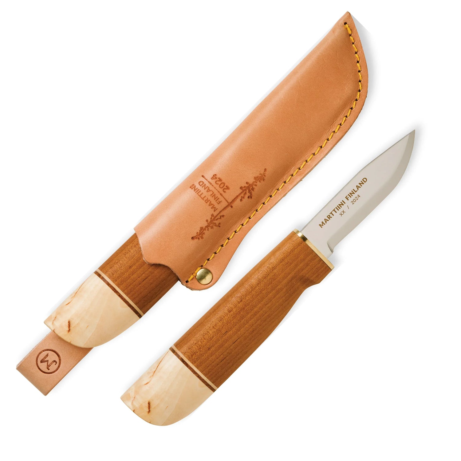 Korpi on saanut innoituksensa suomalaisesta korpimaisemasta joka näkyy maanläheisinä väreinä. Kauniisti käteensopivaksi muotoillun kahvan materiaaleiksi on valittu lämpökäsitelty koivu, visakoivu ja koivuviilu. Kirkas suojavahaviimeistely antaa puukolle pitkän ja kukoistavan elinkaaren. Puukon ilme ammentaa perinteisistä maanläheisistä väreistä sekä kontrasteista, jotka tuovat puukkoon modernin vivahteen. Tuppi on kevyttä ruskeaa nahkaa. Korpi-puukon käytännöllinen ja kätevä muotoilu tekee siitä ihanteellisen työkalun monenlaiseen käyttöön - niin puhdetöihin kuin ulkoilmaelämään.