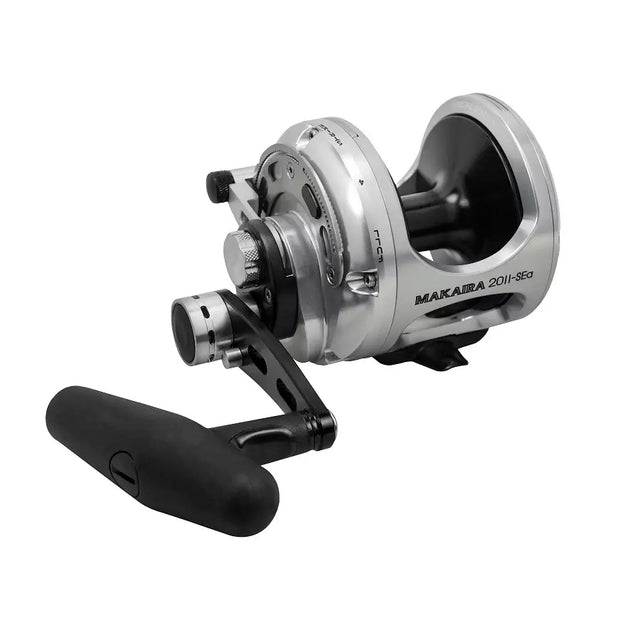 Makairan Carbonite DFD -jarrujärjestelmä säätelee tehokkaasti lämpöä ja varmistaa tasaisen jarruvoiman myös kovassa paineessa. Kaksinopeuksinen vaihteisto mahdollistaa nopean siiman sisäänkelauksen tai voimakkaan väännön tilanteen mukaan. Kela on oikeakätinen ja varustettu tukevalla kiinnikkeellä valjaisiin. Sivulevyyn kaiverrettu marliini viimeistelee sen näyttävän ulkoasun.