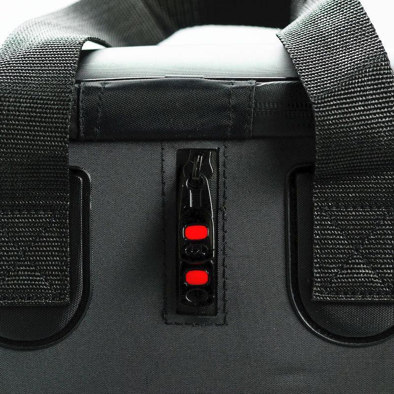 • Laukun kannessa läpinäkyvä kohta akun varaustilan seurantaa varten