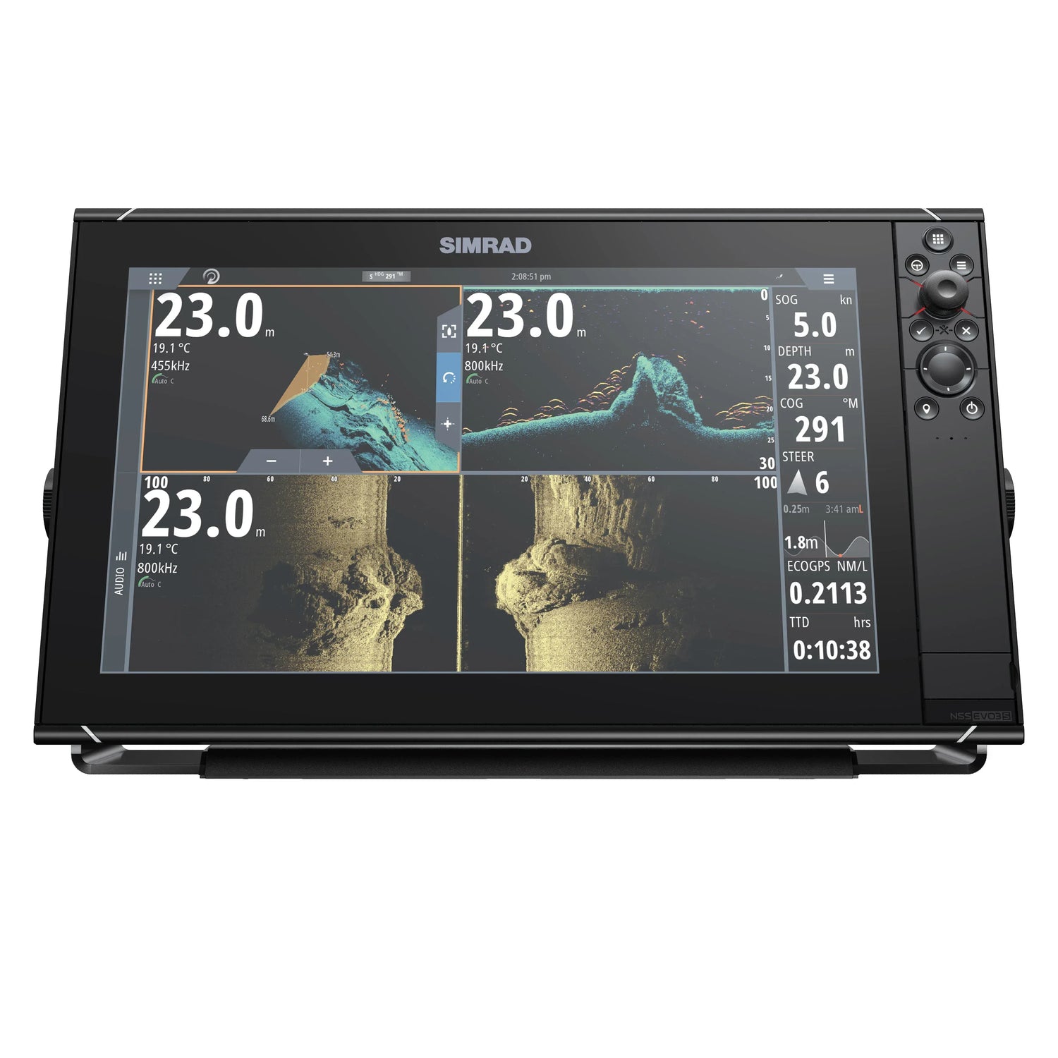 Simrad NSS evo3 -näytön avulla voit hallita toimintoja omalla tavallasi. Voit käyttää usean kosketuspisteen tunnistustekniikkaa tukevaa intuitiivista kosketusnäyttöä, joka sopii täydellisesti veneilyyn tyynellä säällä, ja kiertosäätimellä varustettua sisäänrakennettua näppäimistöä kalastus- ja veneilyretkillä. Ohjaa jokaista näyttötoimintoa joko kosketusnäytön tai näppäimistön kautta, jolloin voit valita tilanteeseen parhaiten sopivimman ohjauksen.