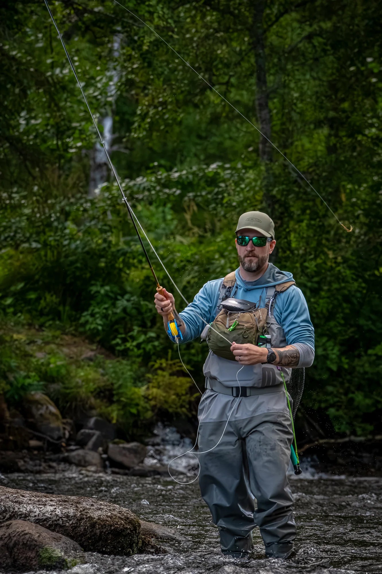 Laukku tarjoaa reilusti säilytystilaa. Etupuolella on kaksi suurta vetoketjullista taskua, kolme siimataskua ja tilava verkkotasku. Takana sijaitseva iso vetoketjutasku sopii esimerkiksi varavaatteille tai eväille. Neljä paikkaa tarvikejojoille helpottaa pienten työkalujen käyttöä. Tarranauhapinnat mahdollistavat varusteiden joustavan kiinnittämisen ja niska- ja vyöhihnat tekevät kantamisesta mukavaa myös pitkien päivien aikana.