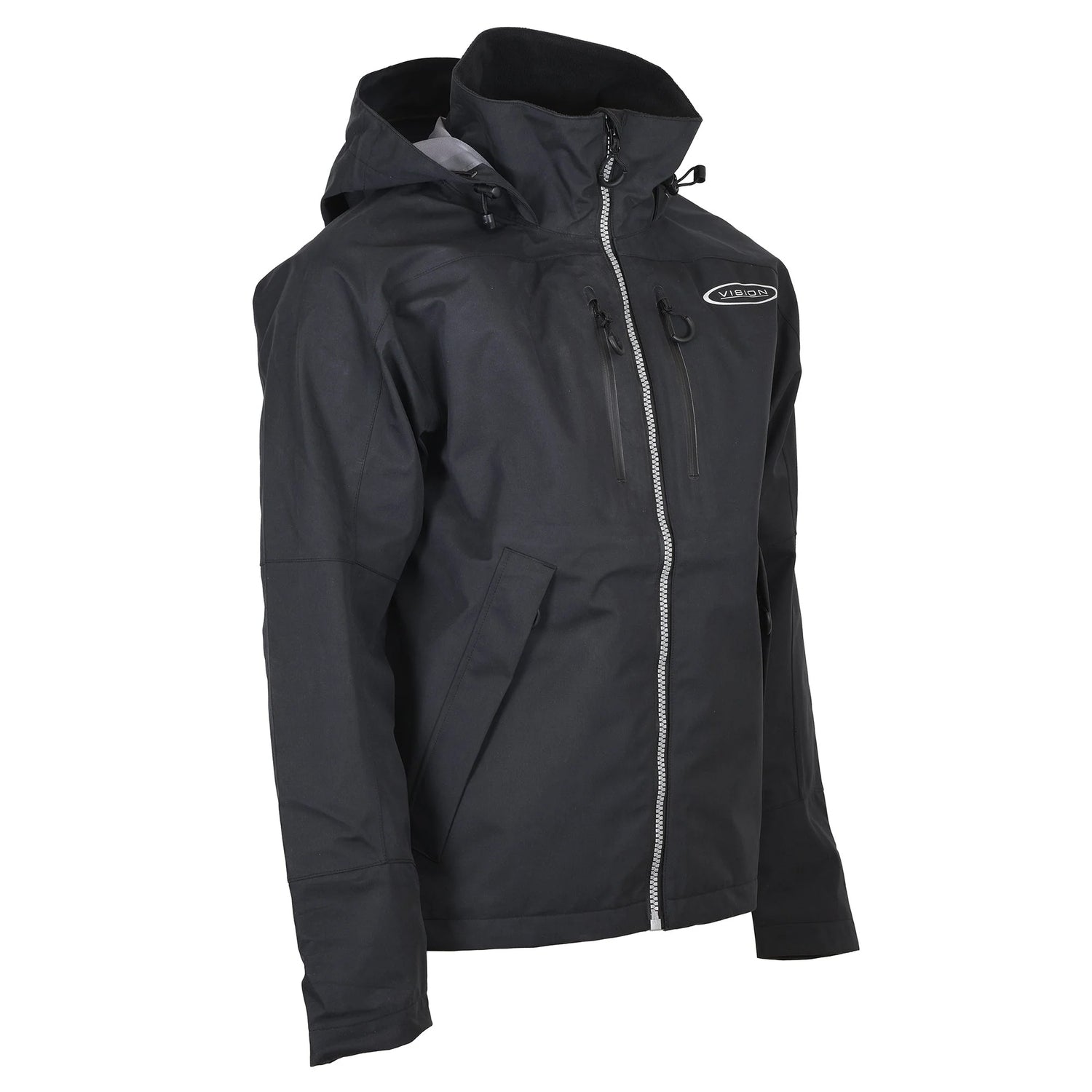 Takki perustuu Visionin vuosikymmenten kokemukseen kahluuvarusteiden kehittämisestä ja sen kestävä hengittävä F3.5‑kangas suojaa luotettavasti vaihtelevissa sääolosuhteissa. Takki on viimeistelty yksityiskohdilla, jotka tekevät siitä todellisen venepäivien luottovarusteen; siinä on fleecevuorattu kaulus, sisäiset D‑renkaat ja kuulokeaukolliset taskut.