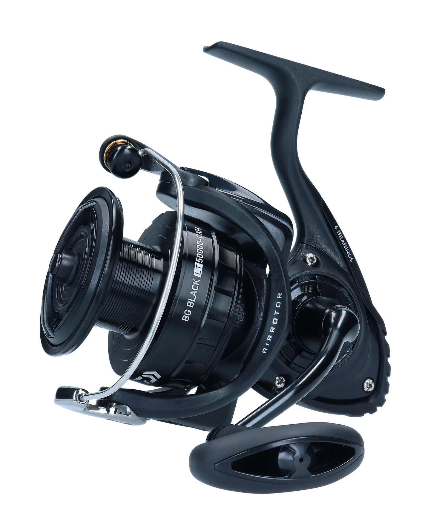 BG Black LT har en stark aluminiumkropp och är utrustad med Daiwas senaste Tough Digigear-växel, vilket ger en jämn och hållbar invevning. ATD-bromsen med kolfiberskivor levererar jämn, pålitlig bromskraft utan att överhettas – upp till 12 kg, och hela 15 kg i storlek 8000! Air Rotor och LC-ABS-spolen ger en balanserad känsla och långa, kontrollerade kast. Den maskinfrästa aluminiumveven med Power T-knopp ger stabilt grepp i alla förhållanden.