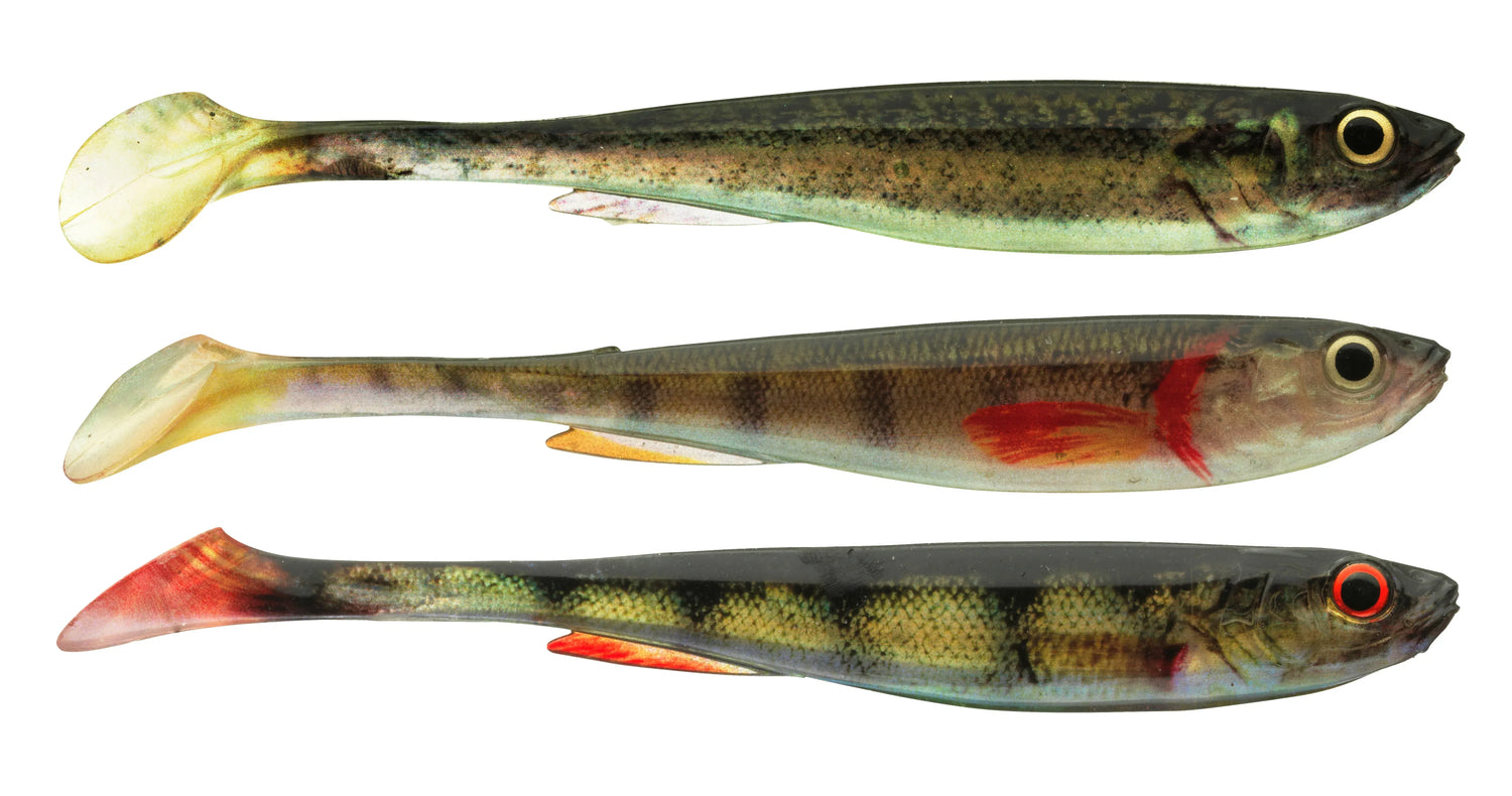 Den unika 45-gradiga svansen på Slim Shad Y skapar en lockande sidledsrörelse och svansvibrationer som fungerar fantastiskt även vid långsam invevning. Tack vare sin smala kropp är jiggen lätt och enkel att hantera, vilket gör fisket behagligt. Dessutom gör de realistiskt målade ögonen betet oemotståndligt för rovfiskar.