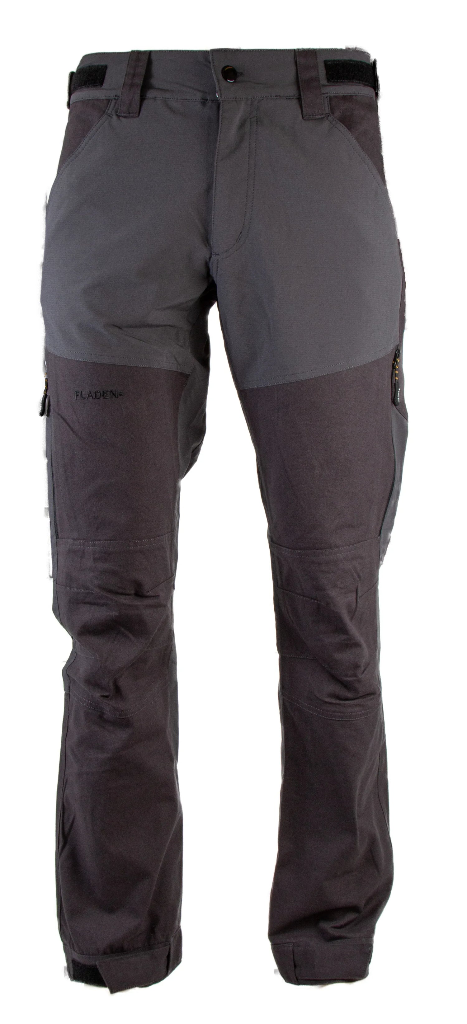 Byxorna har förstärkta knäpartier, kardborrband i bensluten, justering med kardborrband vid midjan samt stora fickor.