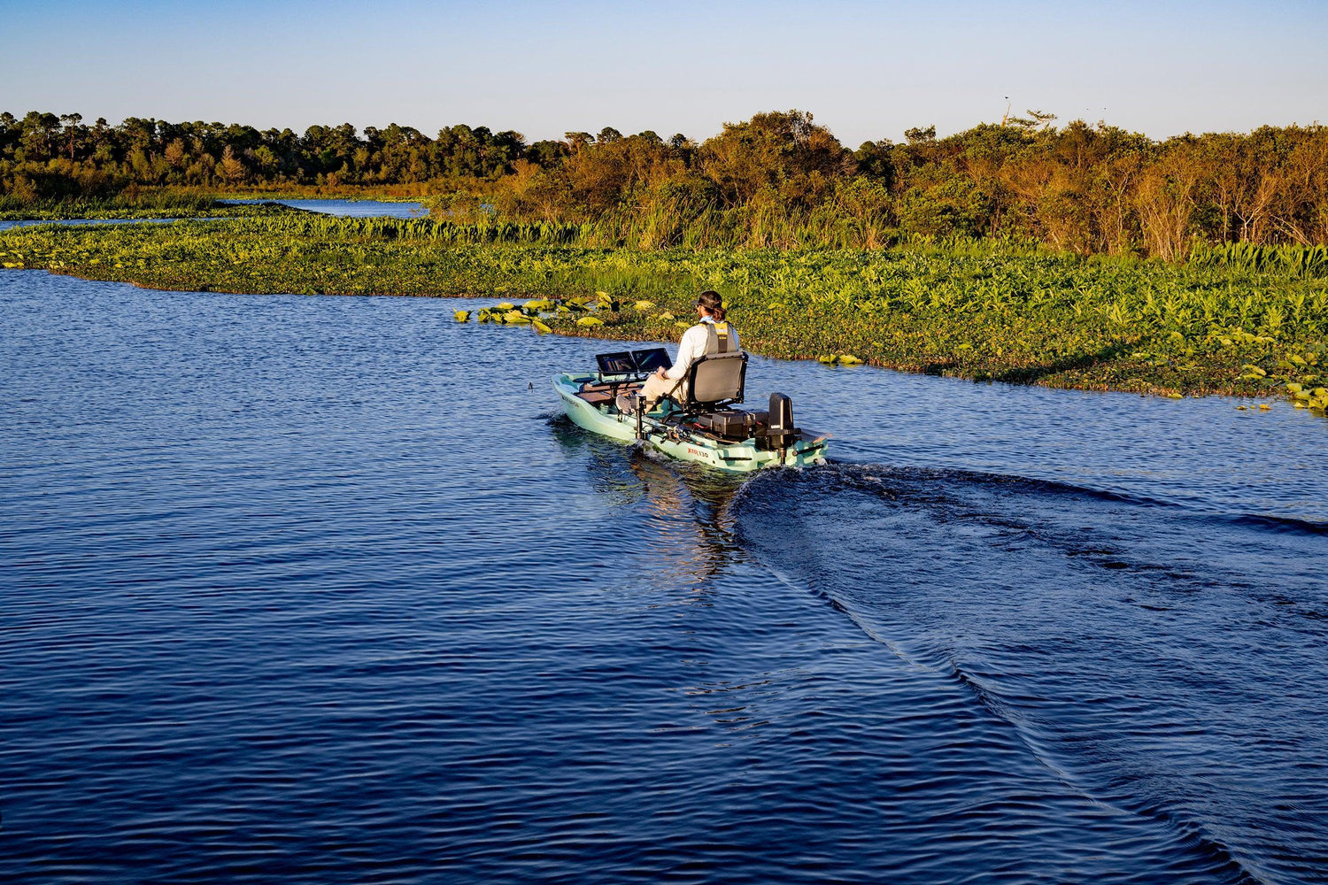 Motorns elektroniska styrning reagerar blixtsnabbt, och du kan svänga i alla riktningar med full thrust. GPS-baserad himmelsankare håller kajaken exakt på plats i vind eller ström, och ruttuppföljning gör fisket effektivt och planerat. Trådlös anslutning till Garmins plotter och smartklockor höjer användarvänligheten ytterligare. Medföljande Power Steer-pedaler ger en handsfree-upplevelse under fisket.