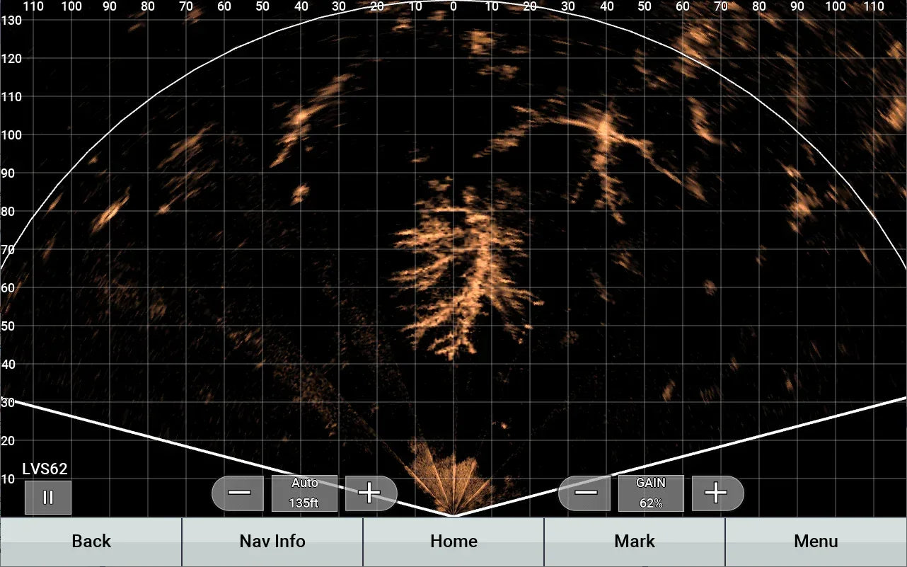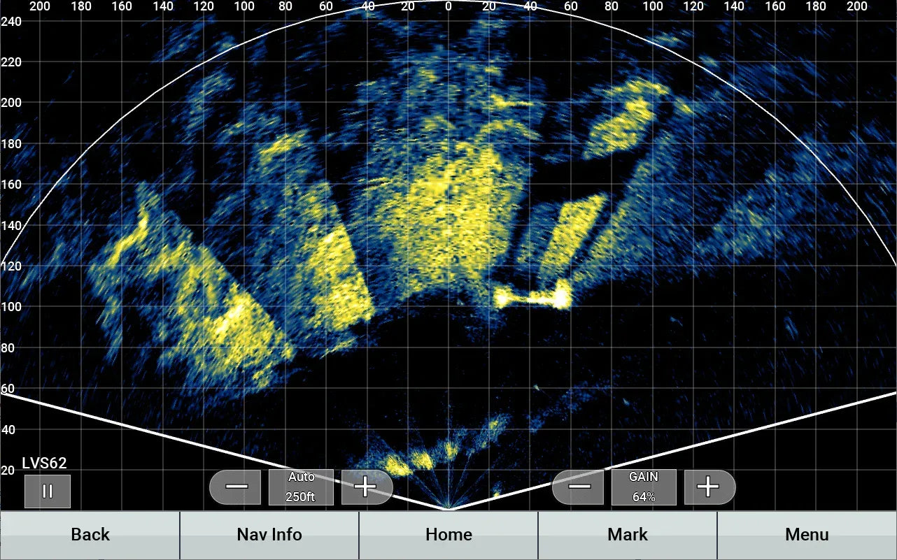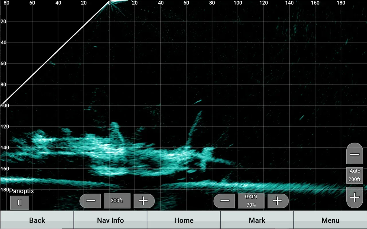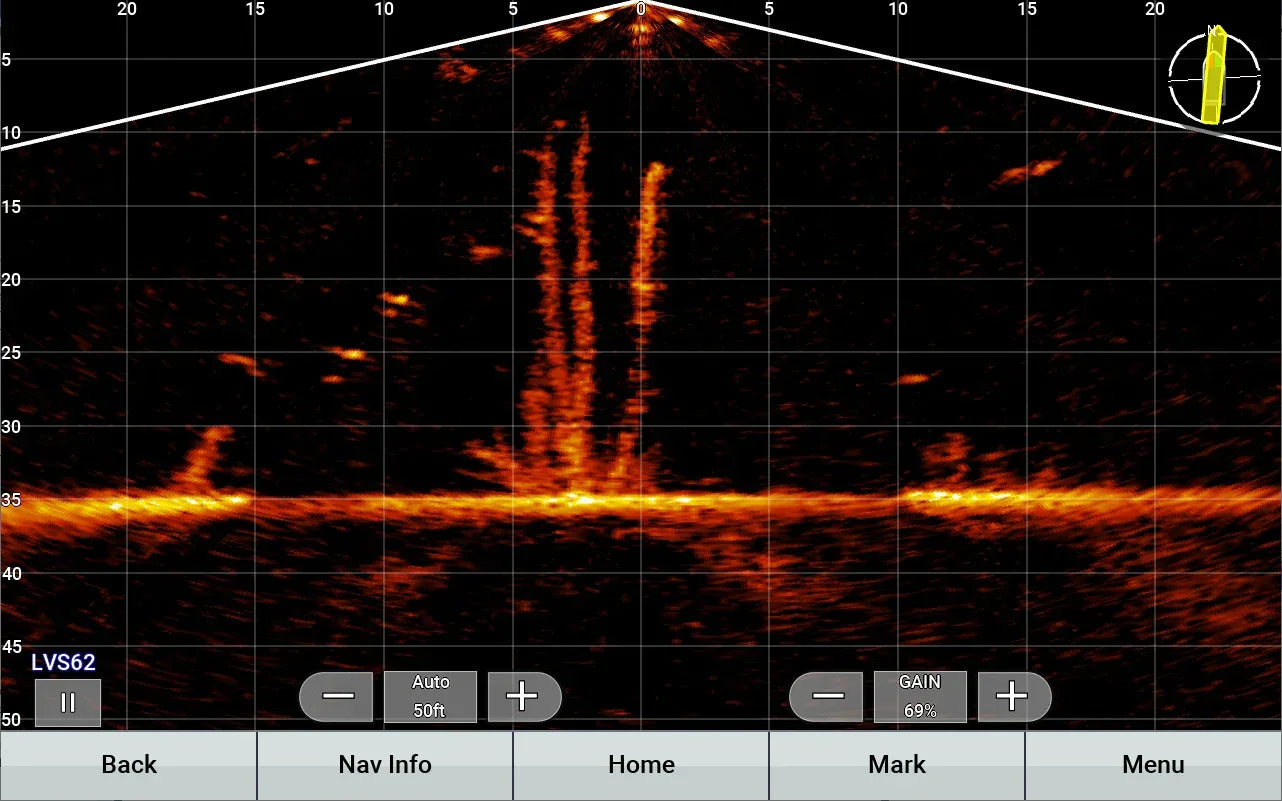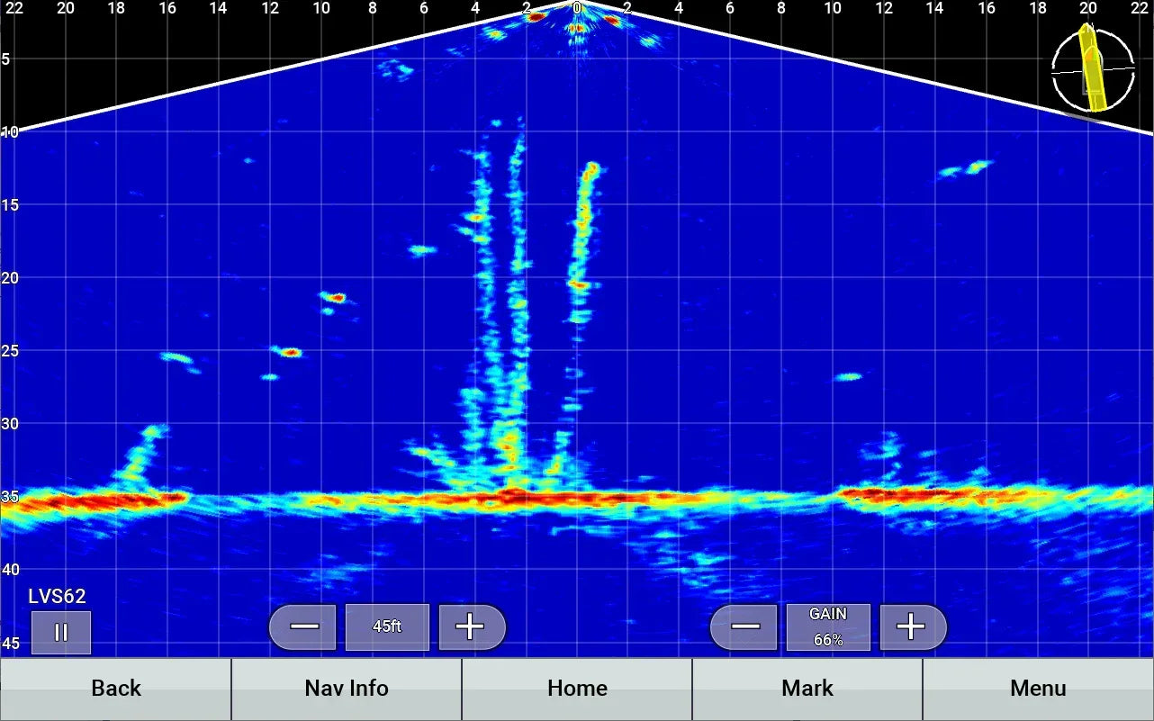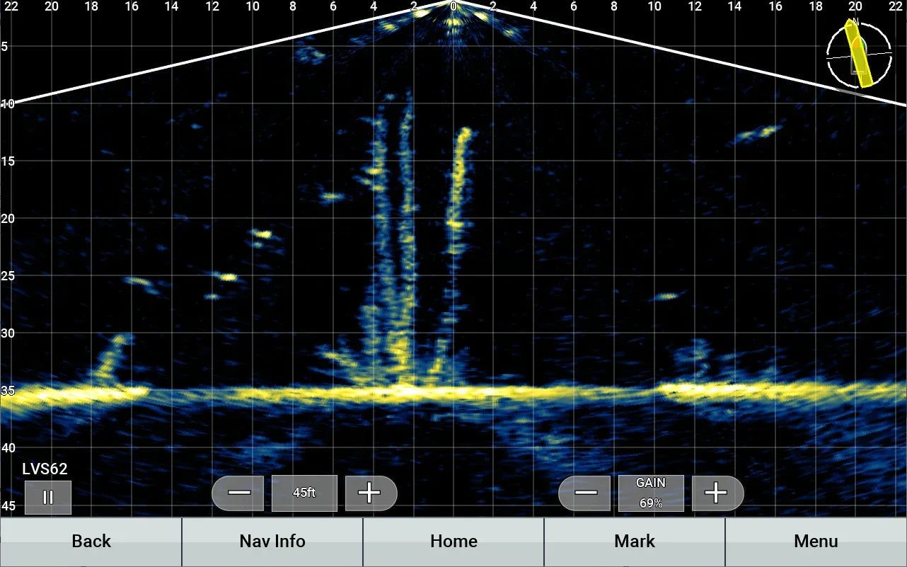 Med hjälp av LiveScope “CompressRange”- och “ReverseRange”-funktionerna kan bilden optimeras så att du ser både nära och längre bort samtidigt.