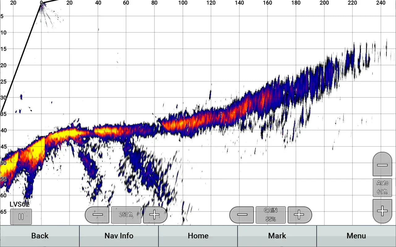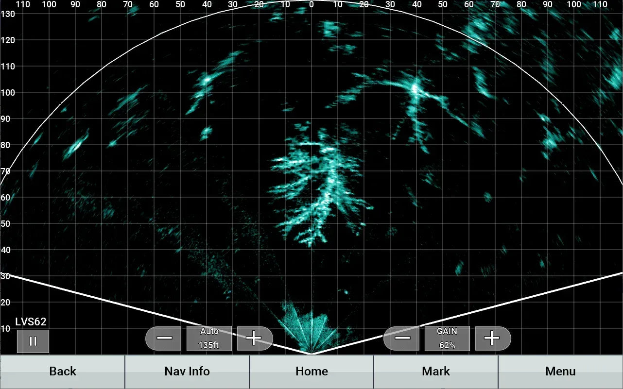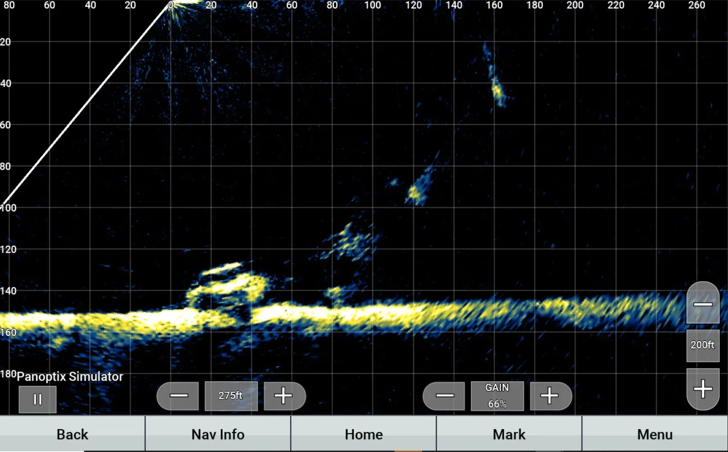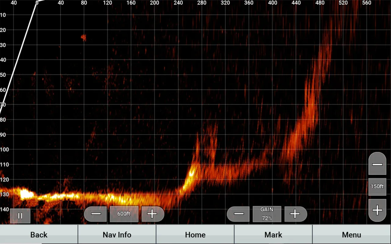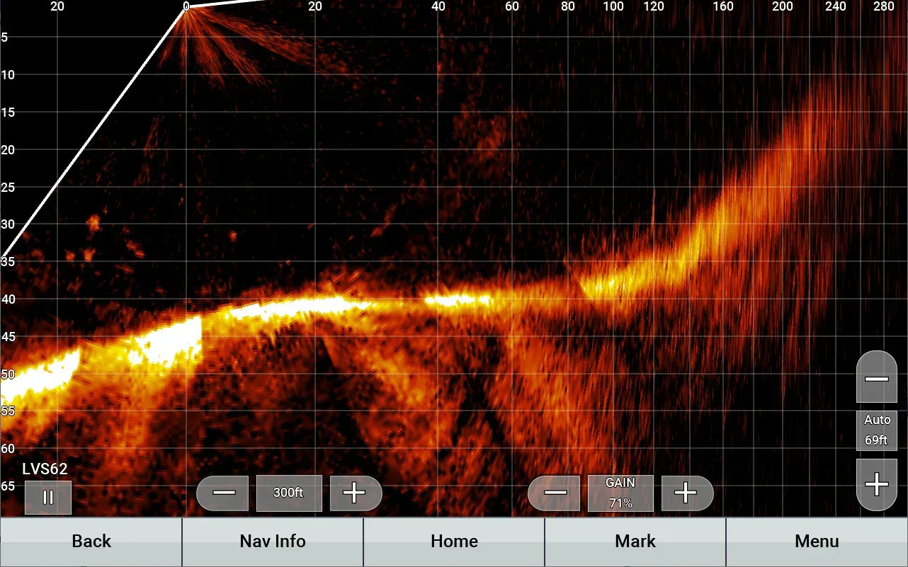 Med hjälp av LiveScope “CompressRange”- och “ReverseRange”-funktionerna kan bilden optimeras så att du ser både nära och längre bort samtidigt.