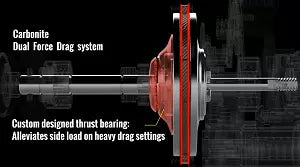 • Förstärkt trycklager – minimerar sidobelastning från stor fisk