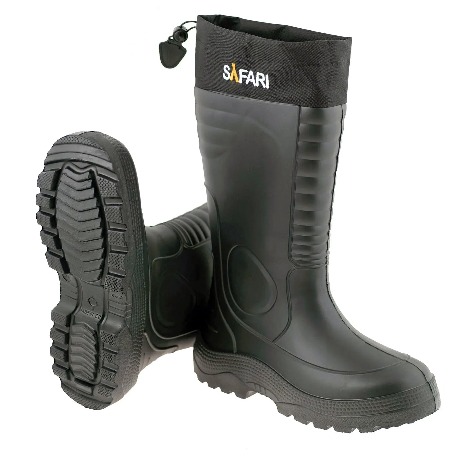 Safari Polar är en värmestövel för riktigt kalla förhållanden. Formen är rymlig. Tillverkad i ytterst hållbar, lätt och värmeisolerande EVA-cellplast. Stöveln har högt skaft med snölås, är lätt att dra på och klämmer inte på vaden. Det löstagbara filtfodret i flera lager avlägsnar fukt väl och hålls bra på plats när du tar av stöveln. Yttersulans grova räffling ger bra grepp även på hala underlag.