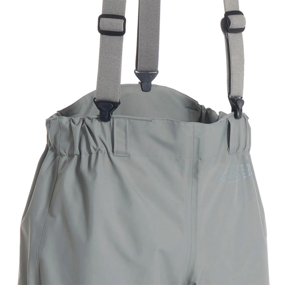 Fyrskikts F4™-tyget är vattentätt, andas effektivt och är miljövänligt behandlat med fluorkarbonfri C0 DWR. NoSeam™-skärningen ger utmärkt passform utan invändiga sömmar, och de anatomiskt formade neoprensockorna håller fötterna varma och bekväma. Inbyggda grusskydd med krokar gör vadandet tryggt och bekvämt även på steniga stränder och bäckar.