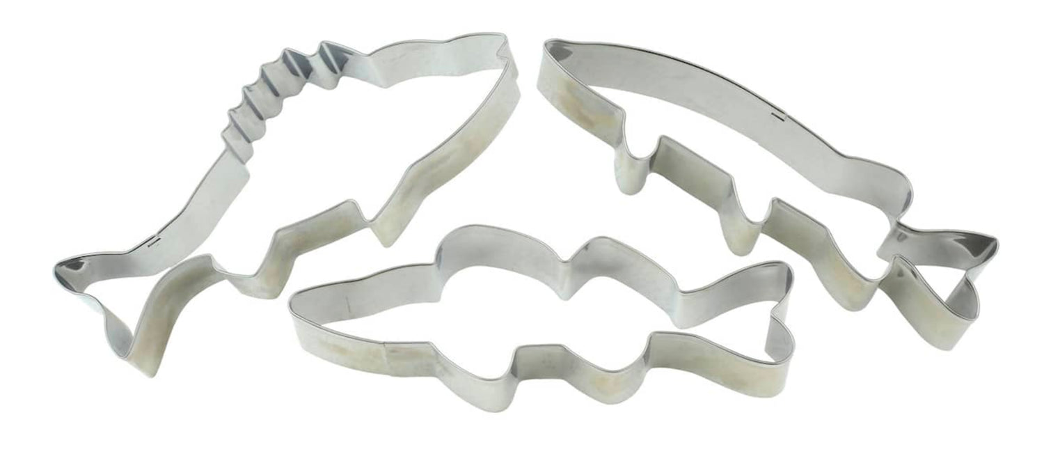 Formarna är 13 cm långa och tillverkade i rostfritt stål, vilket gör dem hållbara och enkla att rengöra. De tydliga fiskdetaljerna gör formarna både dekorativa och praktiska – perfekt när du vill baka med fisketema eller ge bort något unikt till en fiskeälskare som redan har allt.