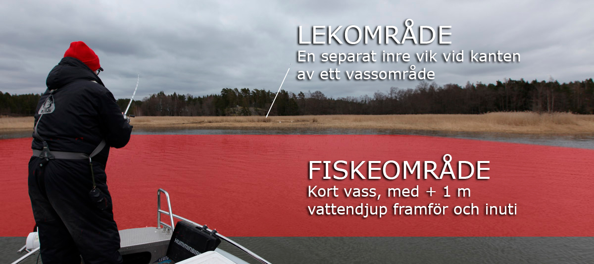 Lekområden är ofta grunda, vegetationstäckta vikar där gäddornas ryggar skymtar bland kort vass eller vegetation.